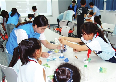 昨日,西青区实验小学30名小学生在天津商业大学环境能源+X创新实验室参观。 本报记者 胡凌云 通讯员 陈勇 摄