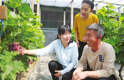 “目前,我们的大棚玫瑰香葡萄正在陆续成熟,批发价格每斤近20元,每天都有电商、批发商前来采购,体验采摘乐趣的客人也不少。”茶淀街道农业农村综合服务中心相关负责人告诉记者,相比露地葡萄,大棚葡萄由于错峰上市,且不易受病虫害影响,其经济效益普遍高于露地葡萄。“近年来,我们鼓励引导种植户发展设施农业,大棚葡萄面积逐年增加,并陆续引进葡萄新品种,形成了以玫瑰香葡萄为主,阳光玫瑰、红宝石、蓝宝石等葡萄品种多元化发展格局。”该负责人说。