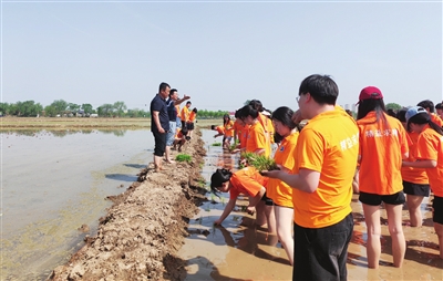 蓝天为背景,水田作舞台,日前,天津现代职业技术学院组织学生走进津南区北闸口镇正营村开展劳动教育实践活动,大家体验农田耕作的辛苦与快乐,在内心深处厚植珍惜粮食的优秀品德。