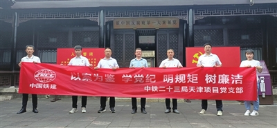 6月5日,中铁二十三局天津房建项目党支部组织全体党员赴西青区廉政教育基地,开展党纪学习主题党日活动。通过重温入党誓词、观看警示教育片等“沉浸式”学习方式,引导党员干部明纪律、知敬畏、守底线,推动党纪学习教育走深走实。 周明