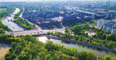 俯瞰杨柳青,运河环抱水清岸绿,古韵新风。