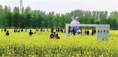 武清区大良镇“油菜花海”流金百亩,运河堤岸沿途风光无限。