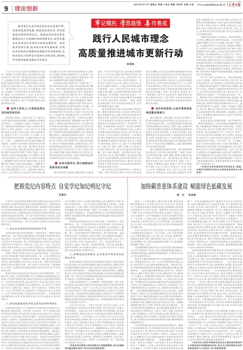 习近平总书记在视察天津重要讲话中指出,“要践行人民城市理念,把保障居民安居乐业作为头等大事”“要坚持走内涵式发展路子,创新城市治理,加强韧性安全城市建设,积极实施城市更新行动,增强发展潜力、优化发展空间,推动城市业态、功能、品质不断提升。”要贯彻落实习近平总书记重要指示精神,全面践行人民城市理念,科学统筹城市空间、规模、产业结构和生产、生态、生活布局,以城市更新赋能城市品质提档升级,打造宜居、韧性、智慧城市,聚力开创城市建设高质量发展新局面。