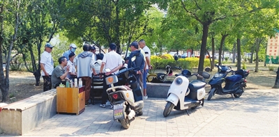 拿来破旧的桌椅,在小公园里一摆放,就成了露天牌摊。吆喝声、笑声、摔牌的声音不绝于耳,可却苦了周边的居民。