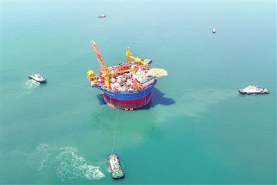 王火平说,在距“海葵一号”2.5公里处,亚洲第一深水导管架平台“海基二号”也在日前完成全部安装作业,刷新海上原油生产平台高度和重量两项亚洲纪录。“海基二号”总高度达428米,总重量超5万吨,共设生产井24口,搭载了原油工艺和外输系统、生产水处理系统及电力供应系统等300余套设备,可实现远程水下井口控制、智能油气开采、台风生产模式等功能。
