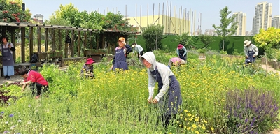 6月6日,记者来到津南区体育公园。与周围喧嚣的环境不同,公园里十分安静。顺着环形路走,很快看到一片木篱笆围起的小院,推开篱笆门,眼前一亮,这里像是一座花园,却又像田间地头,记者认出了水稻。几位戴着草帽穿着围裙的居民在劳作,陪伴左右的是几十只飞舞的蝴蝶。负责人李娟告诉记者,这里是一个生态系统,像森林一样,有着多种多样的植物、动物和真菌,相互关联、和谐共生,是完美平衡的系统。而这个小院里主要的产品都能食用,所以叫做食物森林。这里有大乔木、小乔木、灌木、爬藤、草本、地被等等。
