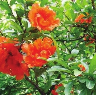 “微雨过,小荷翻,榴花开欲燃。”初夏时节,在满目苍翠中,石榴花悄然绽放,以一树树火红点燃夏季的晴空。