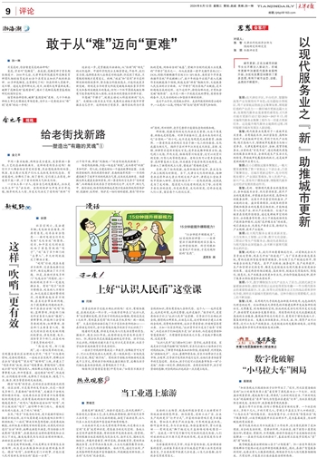 在桂发祥“搓麻花”,体验非遗技艺;在利民调料厂,体验老式打酱油工艺;在天津机床博物馆,聆听近代百年工业历史……工业与文旅的邂逅,拓宽了旅游边界,让人们在工业文化浸润中感受城市独有的魅力。