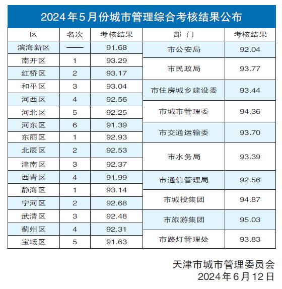 2024年5月份城市管理综合考核结果公布
