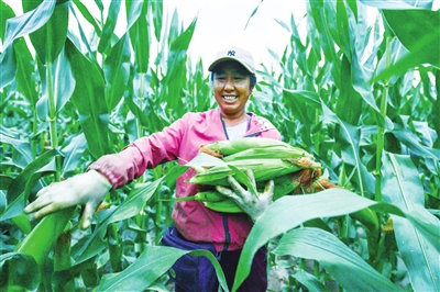 眼下,鲜食玉米即将上市,天津佳鑫蔬果种植专业合作社的成员忙得不亦乐乎,合作社负责人王全友望着眼前的玉米地,按奈不住内心的喜悦:“这个品种是富甜702,属高产型甜玉米,比以往品种增产15%,预计每亩多增加效益600元;这个品种属于早熟型甜玉米,比普通品种早上市4天,别小看这几天,能卖出个好价钱,提前享受市场红利。”