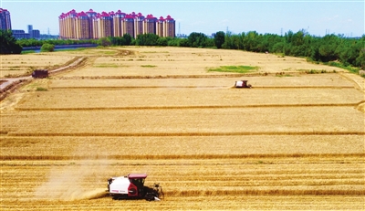 昨日,北辰区双街镇下蒲口村450亩小麦开镰。 本报记者 孙立伟 摄