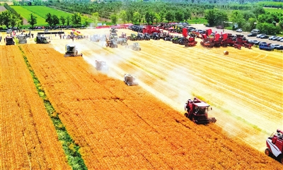 14日,2024年天津市“三夏”机械化生产现场推动会在滨海新区小王庄镇陈寨庄村举行,标志着我市小麦进入大面积机收关键阶段。来自全国各地的智能、高效、科技农业生产机具设备齐亮相,现场还进行了机收减损技能大比武。本报记者 潘立峰 摄