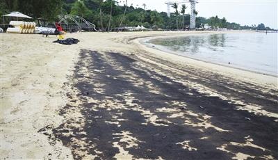 石油泄漏致新加坡海滩污染(图)