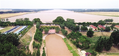 图为6月18日,位于黄河菏泽段的苏阁引黄闸开闸引水。