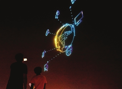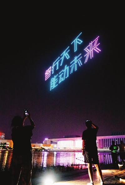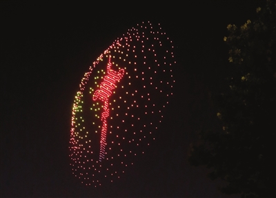 6月19日晚,1000架无人机在天津文化中心成功起飞,立体科技人物、科技图形、科技树等闪耀夜空,预祝2024世界智能产业博览会成功。
