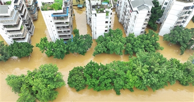 图为被洪水淹没的广西柳州市滨江西路。