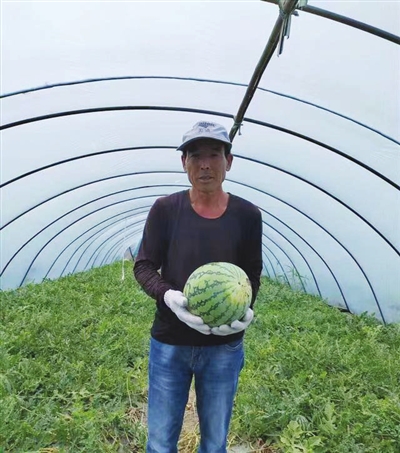 他在第二年换了两个品种,炸瓜率降到20%,第三年的品种瓜秧子大、不吃肥,坐不住果,到了第四年,在淘汰了八九个品种后,钱连来终于找到了满意的西瓜品种。