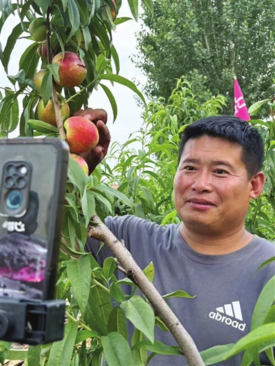 其实于志海最初是靠种植黄油桃出名的。如今他不但没丢了这门手艺,还精进了——在大棚里种黄油桃,用的还是以鹅养地妙招。“棚里的桃能比田地里早一个月上市,一斤能多卖出10多块钱呢。”他说今年长势不错,明年准备扩大大棚桃树栽种面积。