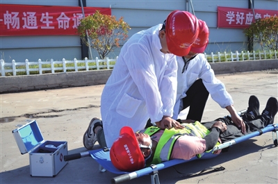 近日,驻津央企中铁十八局五公司青岛即墨区中医医院项目部组织开展了主题为“消除事故隐患,筑牢安全防线”的防坠落应急演练活动。