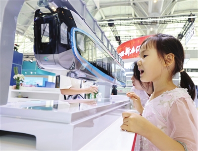 “倒挂列车”模型吸引了不少小观众的目光。该列车为武汉光谷悬挂式单轨列车,是一种中低运量、生态环保、绿色低碳的城市交通新制式。