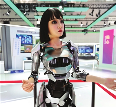 最美机器人 中国移动仿生机器人“小柒”,是整场博览会的明星。它的表情和动作非常像真人,而且“知识渊博”,不论观众提什么问题都能回答得很恰当,随时随刻都有一群“粉丝”围绕着它。