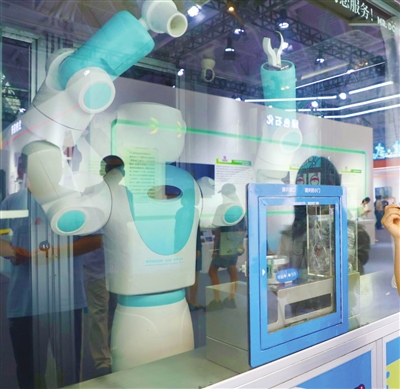 最像大明星的机器人 河北展区通今工业机器人(河北)有限公司的LNG智能巡检机器人,它的功能是检测天然气泄漏、罐区温度异常。它长得很像动画片《机器人总动员》里的大明星——“瓦力”。