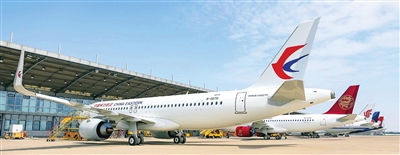 图为空中客车天津交付中心等待交付的飞机。 照片由空中客车中国公司提供