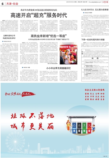 本报讯(记者 万红)昨天,记者从市交通运输委了解到,继津蓟高速温泉城服务区光储充一体化超级充电站建成运营后,日前,我市又相继在京秦高速白涧服务区、滨保高速冀津服务区、津石高速静海西服务区、京津塘高速徐官屯服务区以及津港高速双港停车区(天津方向)、津蓟高速蓟州服务区(天津方向)等点位,布设了12处超级充电桩,年内全市高速公路超级充电站服务点位将增加至18处,全面开启天津高速公路“超充”服务时代。