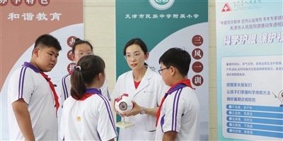 6月18日,市人民医院健康动车开进民族中学附属小学。该院消化科专家李慕然、耳鼻咽喉党支部眼科医生王婧瑞,向家长和学生做了“科学护眼 保护视力”和“科学营养 快乐暑假”的健康科普讲座。 通讯员 李哲