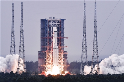 5月3日17时27分,海南文昌。长征五号遥八运载火箭托举嫦娥六号探测器向月球飞驰而去。