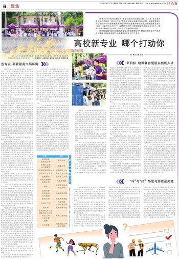 随着2024年高考成绩公布,考生和家长开始填报志愿。连日来,我市多所高校举办开放日,“选什么专业”是考生和家长普遍咨询的问题。根据教育部日前公布的2023年度普通高等学校本科专业备案和审批结果,共新增备案专业点1456个、审批专业点217个,调整学位授予门类或修业年限专业点46个。其中,增设本科新专业24种,2024年起可进行高考招生。