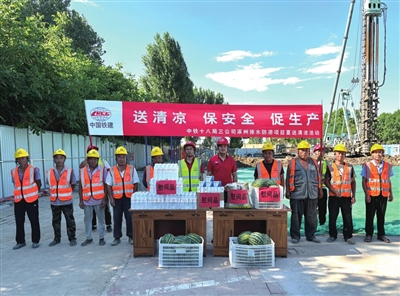 随着夏季气温的不断升高,给现场施工带来了更为严峻的“烤”验。为切实关心职工的身体健康,提升员工的积极性和幸福感,6月24日,中铁十八局三公司津冀管理部涿州排水防涝项目部党支部深入施工现场为坚守在一线的工作人员送上防暑物品。 孙斌