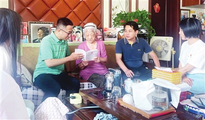 “七一”前夕,天津市海南商会的党员和入党积极分子,走访全国劳动模范、天津市特级劳动模范张士珍,共贺党的生日。 通讯员 林军 摄