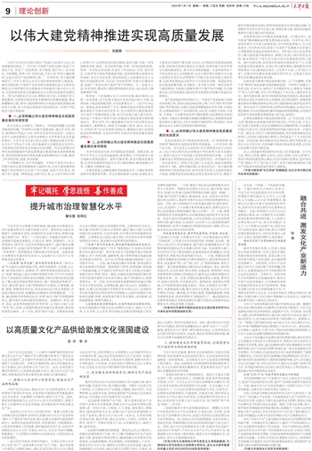 新时代的城市发展,已经进入存量优化的新发展阶段,不再只是经济增长和城市建设的单向维度,更加注重文化的传承与特色产业的创新,走内涵式增长的新路子。实践表明,文化与产业的融合不仅可以为城市赋予更多的魅力和竞争力,还能促进经济的可持续增长和社会的全面进步。天津作为一座具有悠久历史和独特文化底蕴的城市,推进文化和产业的深度融合,不仅能够传承和发展城市特有的文化气质和特质,更能有效整合优质文化资源和服务平台,引领带动更多的文化企业、文化园区和街区不断走向集约化、规模化,在提升城市文化内涵中增强城市文化竞争力,为城市的高质量发展注入新的活力和动力。