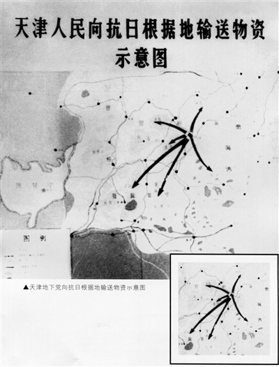 抗日战争期间天津人民向各抗日根据地输送物资示意图