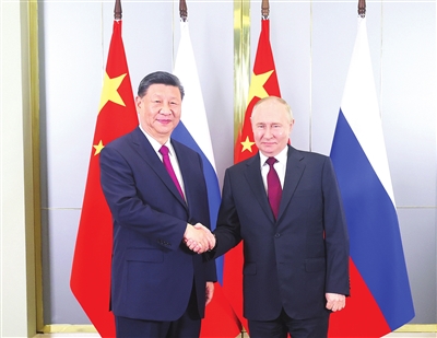 习近平指出,今年5月,普京总统成功对中国进行国事访问,在中俄建交75周年的重要历史节点,我们共同为两国关系下一步发展作出规划和部署。面对变乱交织的国际形势,双方要继续秉持世代友好的初心,坚守造福人民的恒心,不断涵养中俄关系的独特价值,挖掘两国合作的内生动力,为维护两国正当权益和国际关系基本准则作出新的努力。