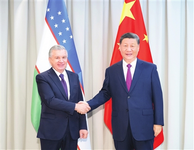 习近平指出,今年1月,你对中国成功进行国事访问,我们一致决定将中乌关系提升为新时代全天候全面战略伙伴关系,在更高起点上构建中乌命运共同体,两国关系发展进入了新阶段。今年是中华人民共和国成立75周年。中国正在加快推进中国式现代化,乌兹别克斯坦也在全面推进“乌兹别克斯坦-2030”战略。我们的目标很宏伟,也很朴素,就是让人民过上更好的日子。中方愿同乌方一道,以国家命运为怀、以人民福祉为念,推动中乌关系高质量发展。