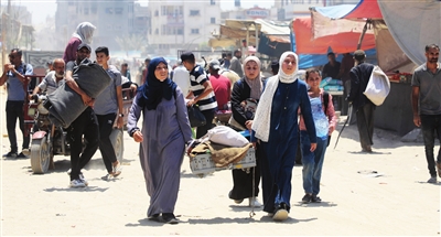 图为7月2日,在加沙地带汗尤尼斯,巴勒斯坦人被迫按照以军要求离开该地区。 新华社发