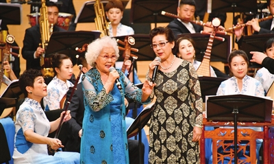 演出尾声,全场合唱的歌曲《歌唱祖国》《没有共产党就没有新中国》都是出自天津歌舞剧院老一辈音乐家之手。同为“天歌人”,于淑珍也希望通过这种方式向前辈致敬,“王莘和曹火星都是全国知名的词曲作家,作为天津歌舞剧院成立65周年的纪念演出,这场音乐会如果没有他们就好像缺了一半。”