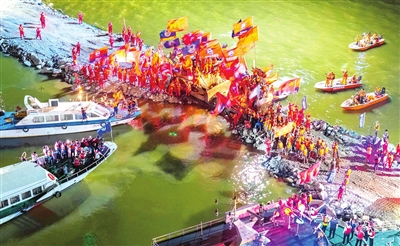 7月8日晚拍摄的团洲垸洞庭湖大堤决口封堵现场(无人机照片)。 新华社发