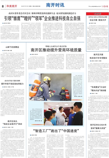 会议指出,要认真学习贯彻习近平总书记在全国科技大会、国家科学技术奖励大会、两院院士大会上的重要讲话精神,深刻认识我国科技事业取得的历史性成就,学好用好我国新时代科技事业发展“八个坚持”的重要经验,扎实推动高质量发展“十项行动”,深化拓展区委“一三二一”工作思路,奋力开创全区科技创新工作新局面。要高水平建设天开高教科创园,带动南开全域科技创新发展,积极盘活现有载体及科创资源,筛选培育一批高新技术企业和“雏鹰”“瞪羚”“领军”企业,推动高校与科研机构瞄准未来科技和产业发展制高点密切合作,力争取得更多创新成果,为推进高水平科技自立自强贡献力量。要持续推动科技创新和产业创新深度融合,提高科技成果落地转化率,聚焦南开区三大主导产业,开展精准招商,用心用力做好服务,聚集更多优质企业和重点项目,助力发展新质生产力。要不断优化科技创新生态,大力发展研发设计、检验检测、知识产权等生产性服务业,强化政策支持和科技金融服务,充分激发创新创造活力。要一体推进教育科技人才事业发展,创新人才培养模式,围绕“引育用留”全链条全环节加强服务,厚植创新文化土壤,确保人才进得来、留得住、用得好。