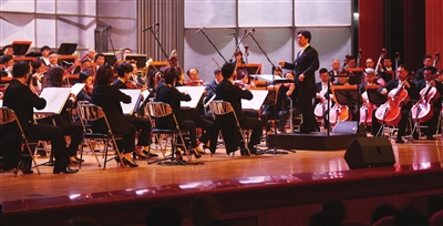昨日,天津交响乐团“红旗颂 给党听”主题交响音乐会在天津大礼堂上演。