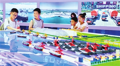 图为国家能源集团天津港务全景沙盘吸引青少年学习了解。