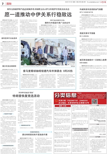 新华社北京7月15日电(记者 邵艺博)就近日伊朗当选总统佩泽希齐扬撰文表示伊方珍视伊中传统友谊,外交部发言人林剑15日表示,中方愿同伊朗新政府一道努力,推动中伊全面战略伙伴关系行稳致远。