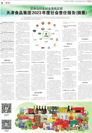 2023年是全面贯彻党的二十大精神的开局之年,是天津食品集团落实“十四五”发展战略,推动集团高质量发展承上启下的关键之年。集团围绕落实市委、市政府“十项行动”部署和“三新”“三量”工作要求,不断拓展产业链,完善供应链,提升价值链,改革发展各项工作取得新进展新成效,各项事业发展迈上新台阶。