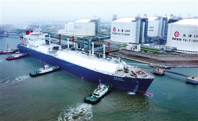 天然气运输船“中能青岛”号靠泊国家管网天津LNG接收站。 照片由天津海关提供