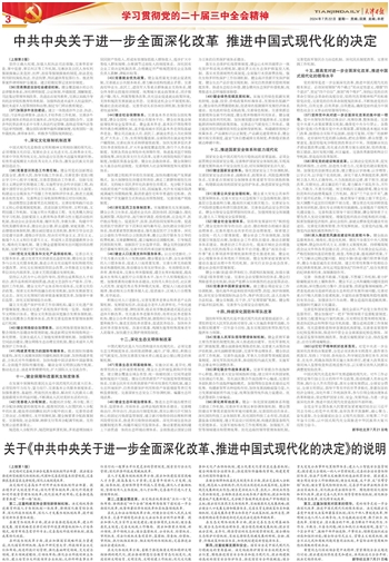 决定稿对健全推动经济高质量发展体制机制、促进新质生产力发展作出部署。围绕发展以高技术、高效能、高质量为特征的生产力,提出加强新领域新赛道制度供给,建立未来产业投入增长机制,以国家标准提升引领传统产业优化升级,促进各类先进生产要素向发展新质生产力集聚。