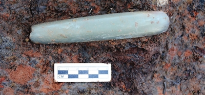 三星堆遗址发掘区出土的玉凿。