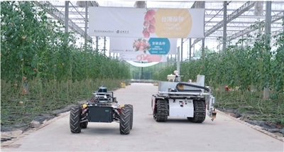 ▲玻璃温室内的全场景数据采集机器人正在作业。 周良波/摄