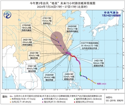 中央气象台预计,台风“格美”将于24日夜间在台湾岛中北部沿海登陆,之后穿过台湾岛,将于25日下午到夜间在福建福鼎到晋江一带沿海登陆。